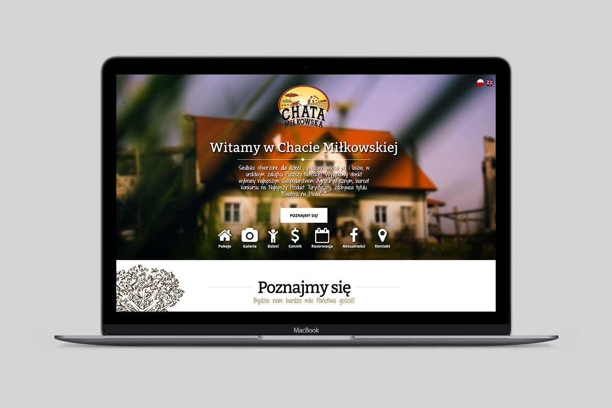 Projekty materiałów drukowanych, grafik na potrzeby Internetu oraz strony internetowej ośrodka agroturystycznego Chata Miłkowska.