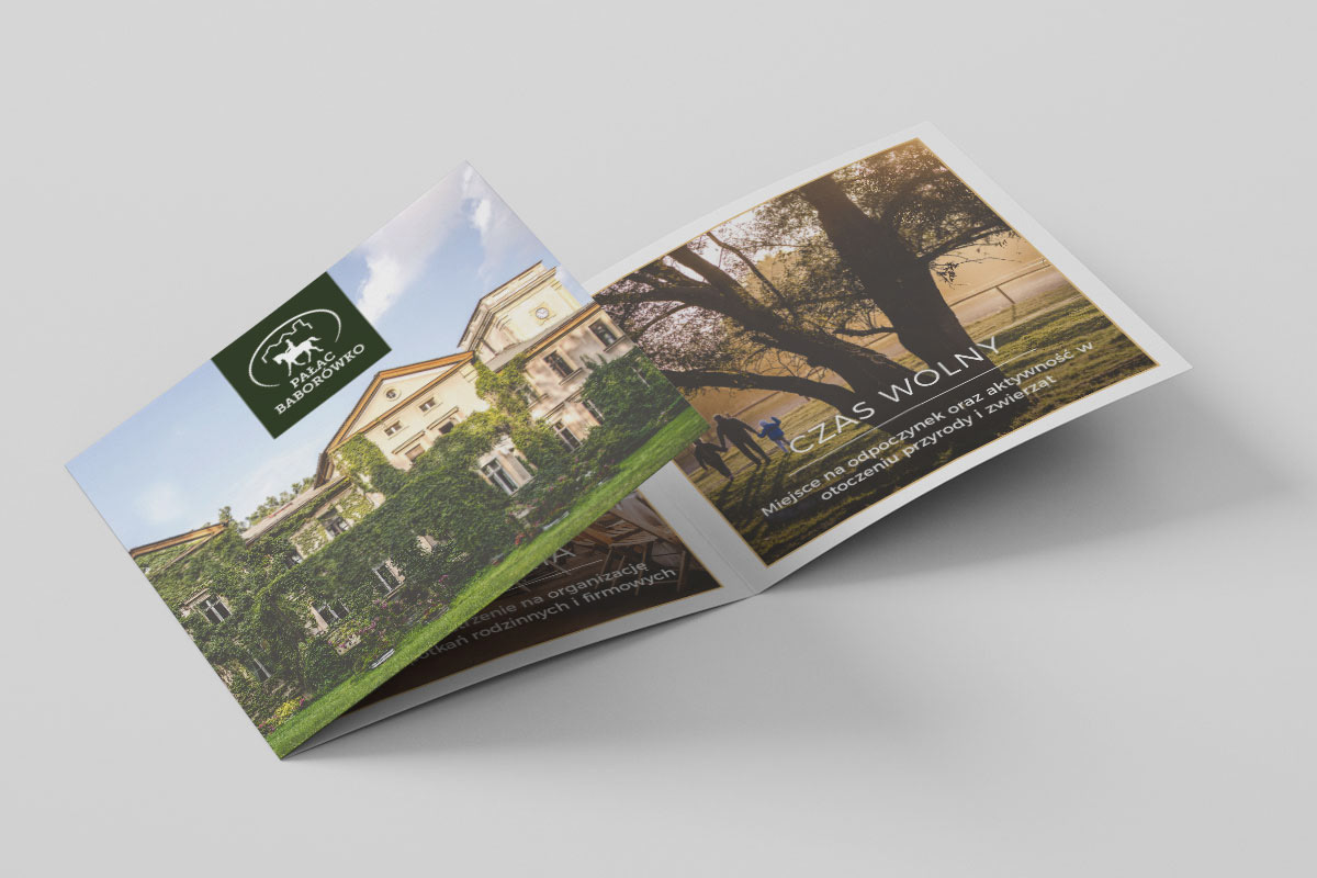 Projekt identyfikacji wizualnej, materiałów drukowanych, grafik na potrzeby Internetu oraz strony internetowej Pałacu Baborówko.