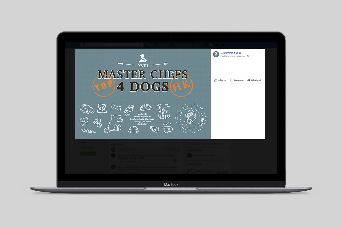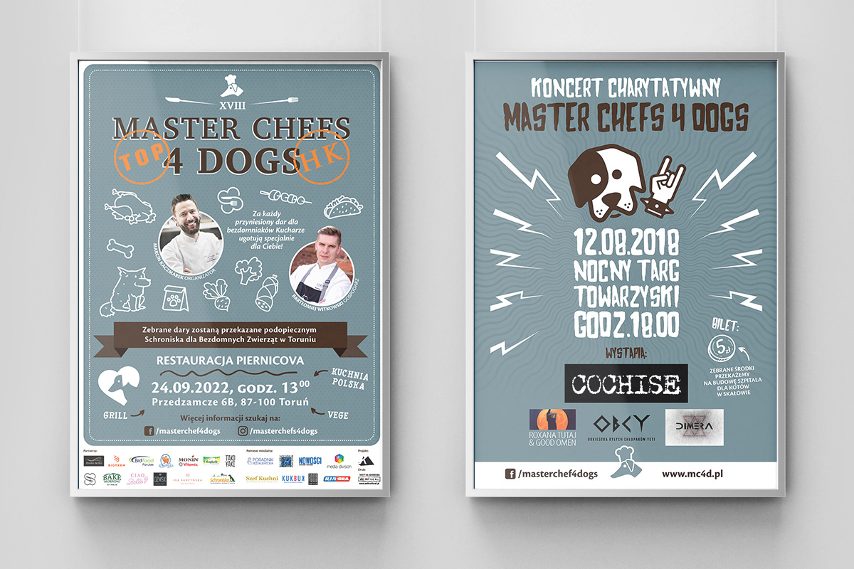 Opracowanie identyfikacji wizualnej cyklu charytatywnych imprez kulinarnych wspierających schroniska dla zwierząt. Projekty materiałów drukowanych i grafik na potrzeby Internetu.